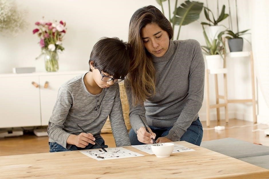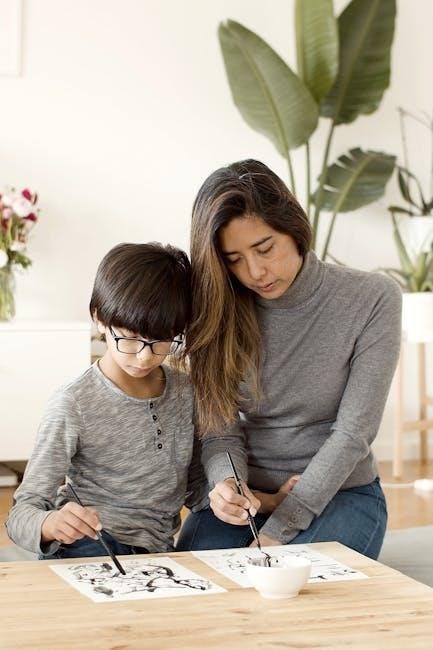 PDF resources often include pre-drawn number lines or ask students to create their own, reinforcing the connection between symbolic representation and visual understanding. This method is particularly helpful for students who benefit from a concrete, spatial approach to learning integer operations.