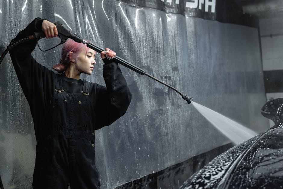 Ensure adequate ventilation when operating indoors or in enclosed spaces․ Avoid using the pressure washer on surfaces that could be damaged by high pressure․ Always release pressure before disconnecting hoses or nozzles․