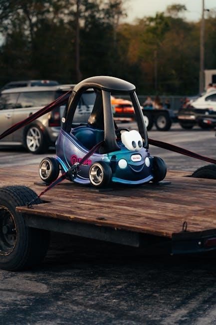 Weight distribution is critical; PDFs outline proper placement to avoid exceeding axle weight limits. Securement PDFs illustrate the use of wheel chocks‚ tie-downs‚ and potentially vehicle restraint systems. Permits are frequently required for oversized or overweight vehicles‚ and PDF guides explain the application process. Understanding these dimensions‚ readily available in PDF format‚ ensures legal and safe vehicle transport‚ minimizing risks during transit.